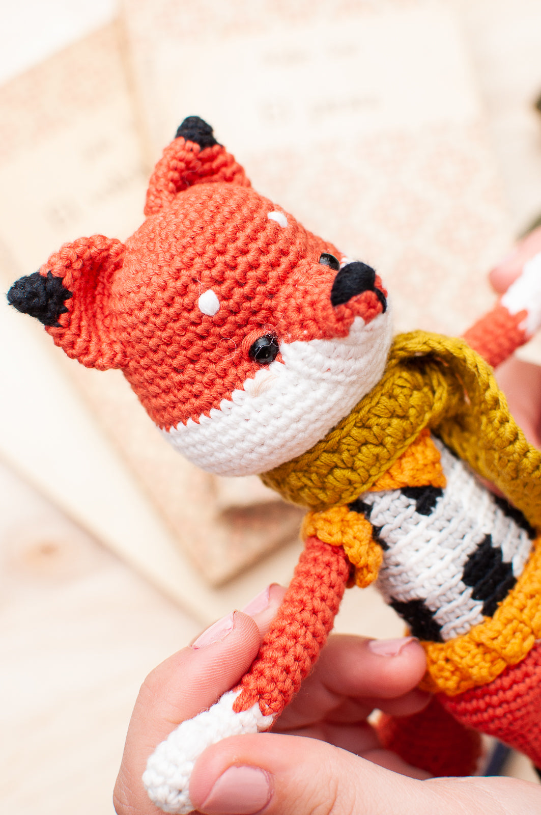 Lucrecio Vulpino es un poco arrogante y presumido, pero quién no lo sería con ese maravilloso chaleco de Tapestry Crochet que lleva ¡Anímate a tejerlo con este pack de 6 ovillos con los que podrás no sólo hacer a Lucrecio Vulpino y su chaleco, sino también su estilosa bufanda!